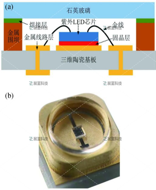 深紫外LED发出的深紫外线会催化芯片附近的氧气形成了臭氧、降低光效、水蒸气也会腐蚀芯片,降低器件寿命。