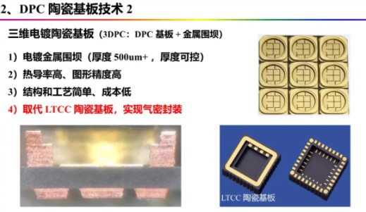 2. 陶瓷基板采用激光打孔和电镀填孔技术,是可以实现垂直互联,满足了三维集成需求。