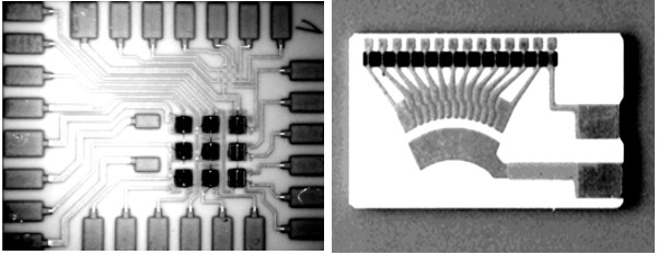 然后通过电镀技术沉积铜以填充陶瓷基板上干膜的暴露部分,并具有合适的导体厚度和宽度,以形成铜电路。通过上述工艺,金属化电路区域具有细长、平整、光滑的特点,散热性好。然后镍和金沉积在铜的上表面,镍膜防止铜引线的原子扩散到金膜中。金膜避免了导体表面的氧化,提高了金键合线的附着力。在铜的上表面形成光学电阻,然后去除陶瓷基板上剩余的干膜。剥离干膜后,铜电路由镍和金膜保护。