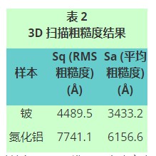 在使用氮化铝的情况下,在涂敷厚膜浆料之前,必须对表面进行适当的准备。这通常涉及研磨表面或使用特殊溶剂进行清洁过程,为了比较氧化铍和氮化铝之间的表面光洁度,使用3D表面扫描轮廓仪KLA-Tencor P-11进行表面扫描。图2比较氧化铍和氮化铝的3D扫描粗糙度值。