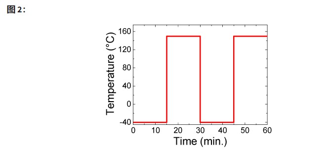 【热冲击测试的温度曲线。-40 °C 室和 +150 °C 之间的传输时间为 15 秒。】
