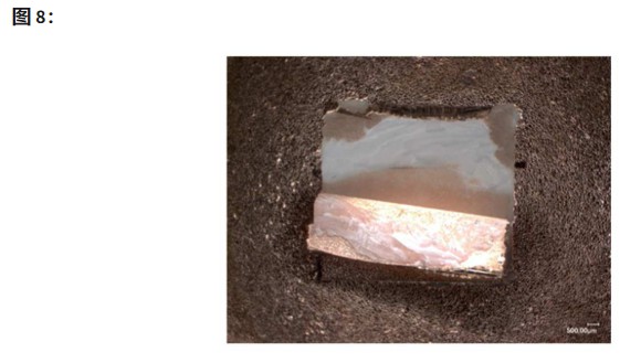 图8显示了连续 TPC 层顶部剪切掉的铜箔的光学图像。失效模式部分在陶瓷内部,这表明铜/陶瓷和膏/箔界面都不是PBC的薄弱环节。