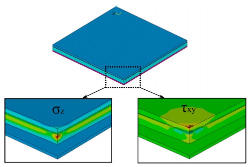 本文对热弹性有限元的计算结果将热弹塑性有限元法与热弹塑性有限元法进行比较,热弹塑性有限元法计算的结果更接近实际测量结果。在这个模型中,陶瓷的厚度是0.635毫米,铜金属层的厚度为0.3毫米,厚度为Ag-Cu-Ti焊料层为50 μm。样品的变形为用数显高度计测量,如图3所示。如果塑料不考虑焊接过程的变形,可靠性计算量会大大减少。但是计算结果热弹塑性有限元模型更适合实际情况和计算是可靠的。根据调查结果如图4拐角区域试样的剪应力计算和轴向残余应力图可知,轴向拉伸应力是陶瓷基板失效的主要因素。