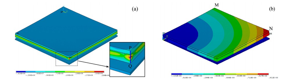 比较了热弹性和热弹塑性有限元的计算结果,在焊接过程中的塑性变形过程极大地影响计算结果的准确性,发现最大轴向应力集中在陶瓷侧,轴向残余应力是引起陶瓷基体开裂的主要因素。陶瓷、金属和焊料的厚度以及基板尺寸对残余应力有显着影响和翘曲变形,在这两者都可以通过施加外部压力来减少。