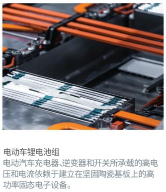 许多固态电力电子设备包括用于大功率LED、射频/微波、电动汽车、电气基础设施和军事应用等,都是依赖于物理和耐热的陶瓷基板材料作为基础。这些陶瓷材料与导热和导电金属结合,能助于将热能传递到散热器,而散热器并远离关键设备或组件的有源区域,同时将电力电子设备与接地屏蔽层和外壳电绝缘。